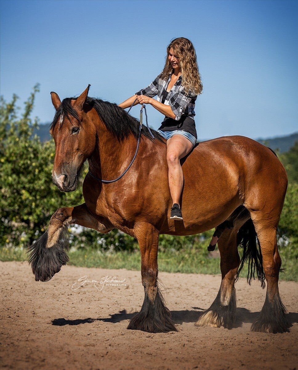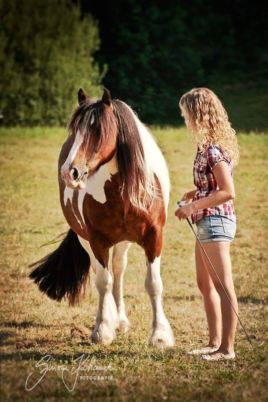 Dancer ist für mich mein absoluter Goldschatz, er begleitet mich nun schon 20 Jahre, mehr als mein halbes Leben. Dancer war mein erstes eigenes Pferd und schon sehr früh war ich ein Tinker-Fan. Eine Freundin züchtete Tinker und somit war es für mich naheliegend, dass mein erstes Pferd ein Tinker sein sollte. Dancer ist mit 10 Monaten bei mir und zwei Haflingern meines damaligen Freundes eingezogen. Mit 3 Jahren ließ ich ihn kastrieren. Dancer ist einfach eine Seele von Pferd. Er ist extrem gutmütig und sanft und eine absolute Lebensversicherung. Er ist verdammt nervenstark und liebt die Freiarbeit. Dort verschmelzen wir beide und sind in unserer Welt. Zirkuslektionen sind nicht so sein Ding, das haben wir irgendwann sein lassen, da ich möchte, dass meine Pferde Spaß an der Arbeit haben und möchte nichts aufzwingen, nur damit er es beherrscht.